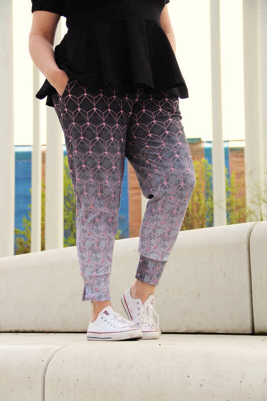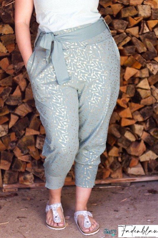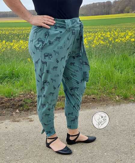 Die Hose ist oben weit geschnitten und verjüngt sich zu den Knöcheln. Als besonderes Highlight nähst du die Hose mit den enthaltenen Schlitzbündchen. Diese kannst du an der Innen- oder Außenseite tragen. Für einen schickeren Look ergänzt du deine Pants einfach mit dem Bindeband.