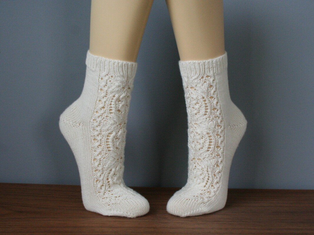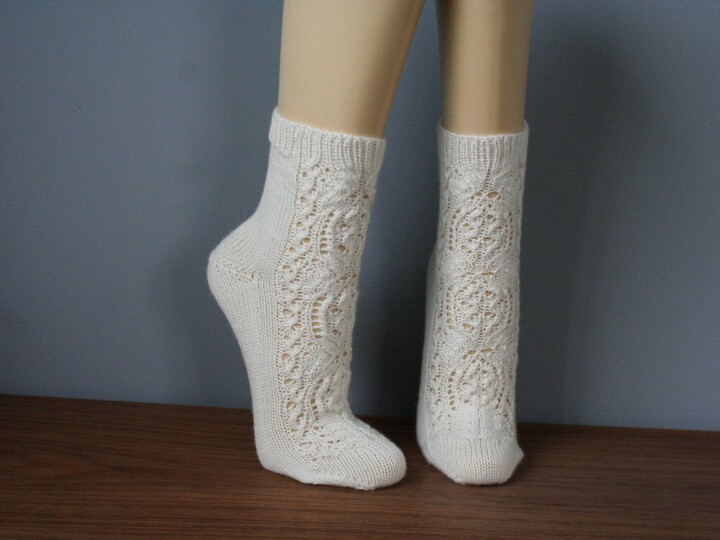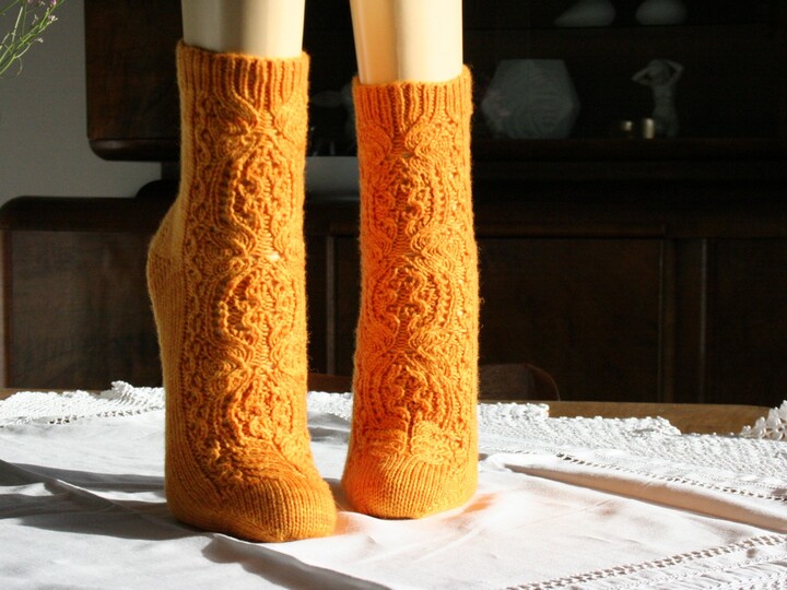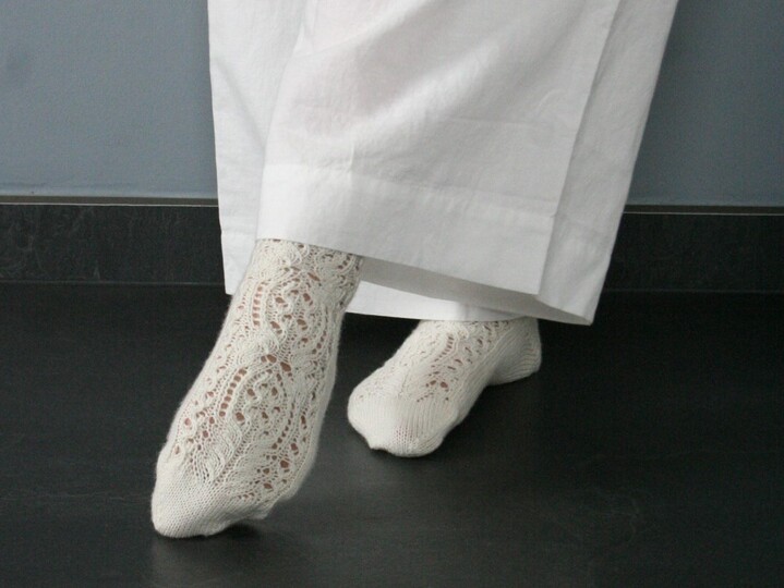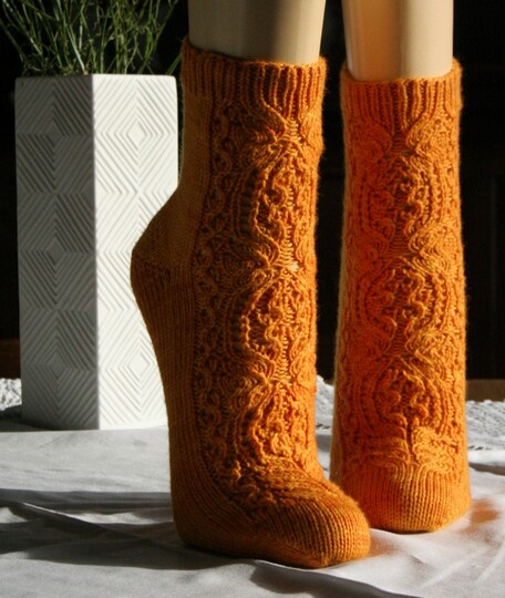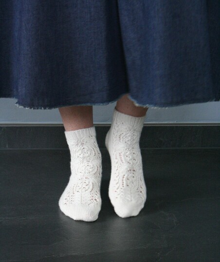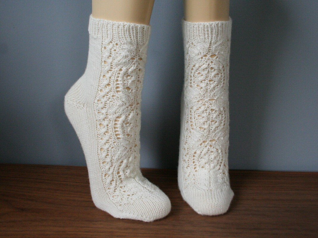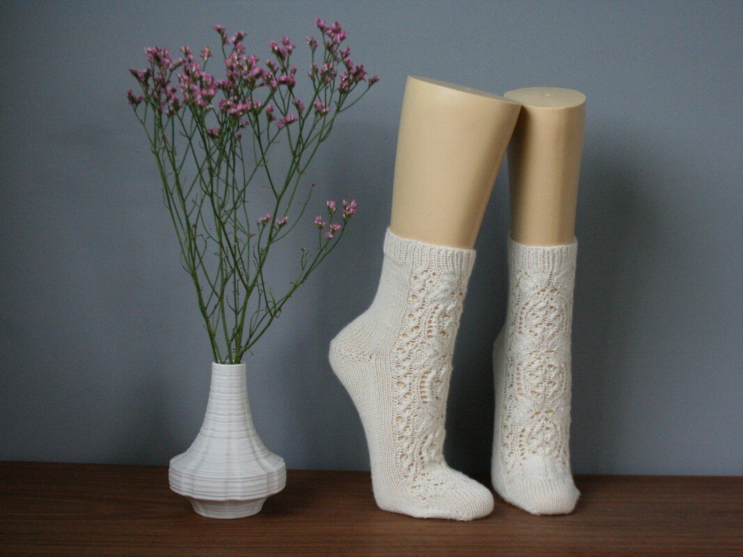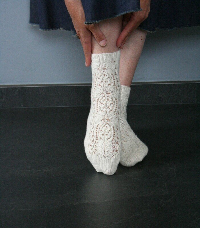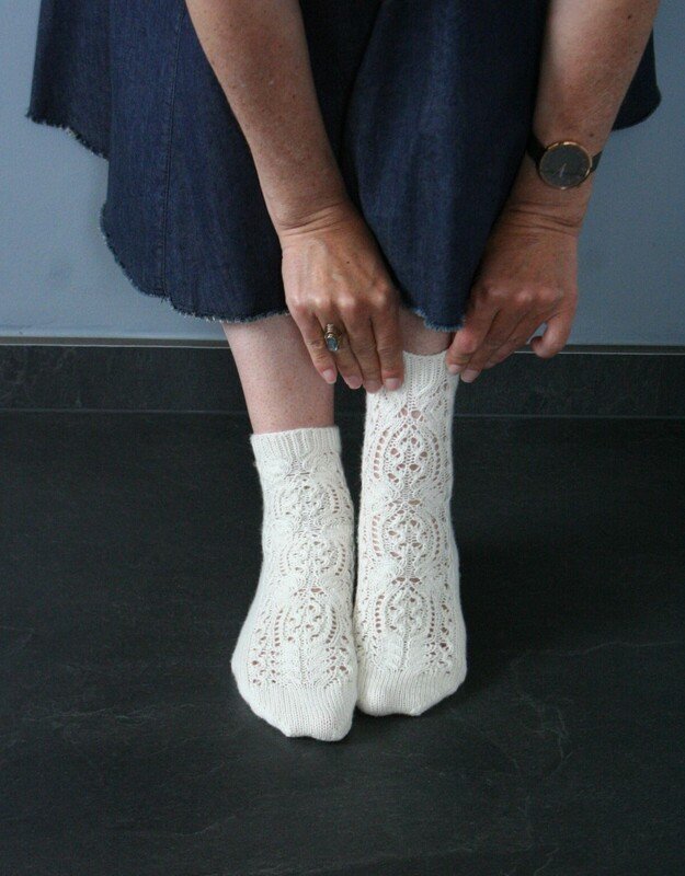 Junimond ist eine Anleitung von Daniela Mühlbauer zum Stricken von Lacesocken. Das schöne Muster ist nicht so schwer, wie es ausschaut!
