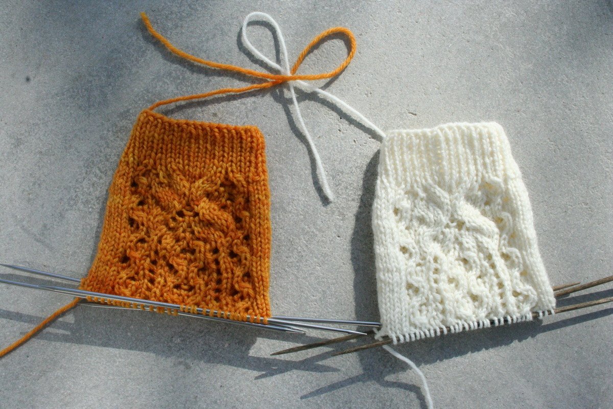 Techniken: rechte und linke Maschen stricken, Maschen zusammenstricken, Umschläge