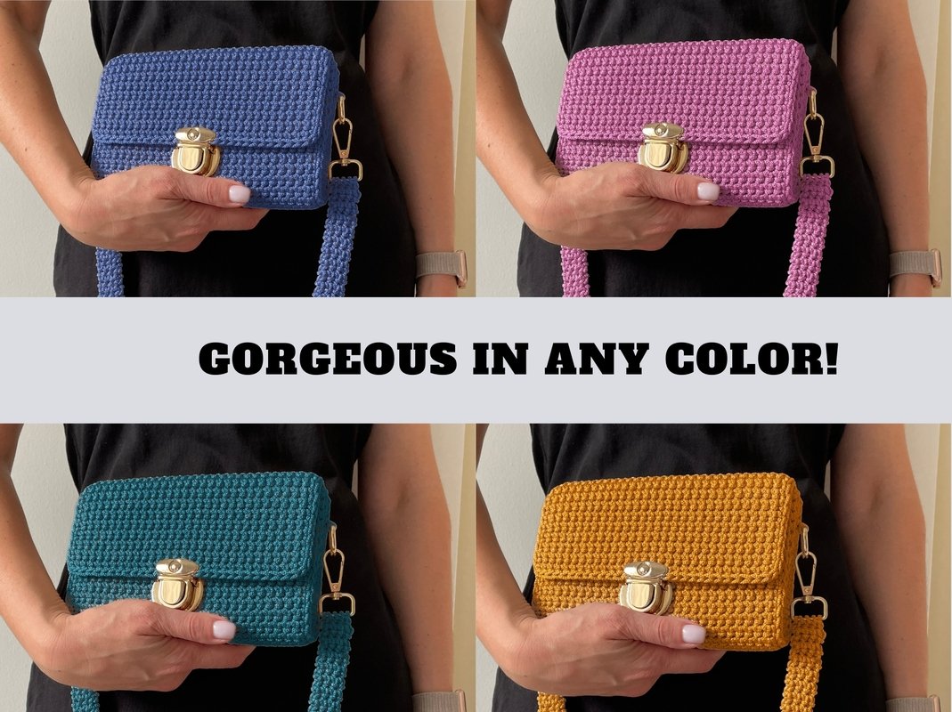 Diese digitale Häkelanleitung für eine elegante und vielseitige Schultertasche enthält ausführliche Arbeitsanweisungen mit Begleitfotos für die wichtigsten Arbeitsschritte. Die „Mini Crossbody Bag“ findet vielseitig Verwendung als Handtasche, Ausgehtasche, Schultertasche, oder Messenger-Bag. Durch das vielseitige Design paßt sie zu vielen Outfits, ob elegant oder sportlich.