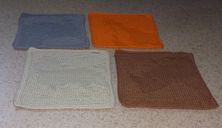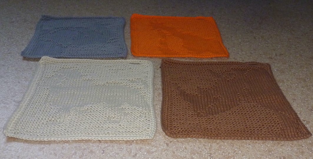 Fertige Lappen sind bei mir ca. 20x20 cm groß. Das hängt ab von Material und Strickweise!