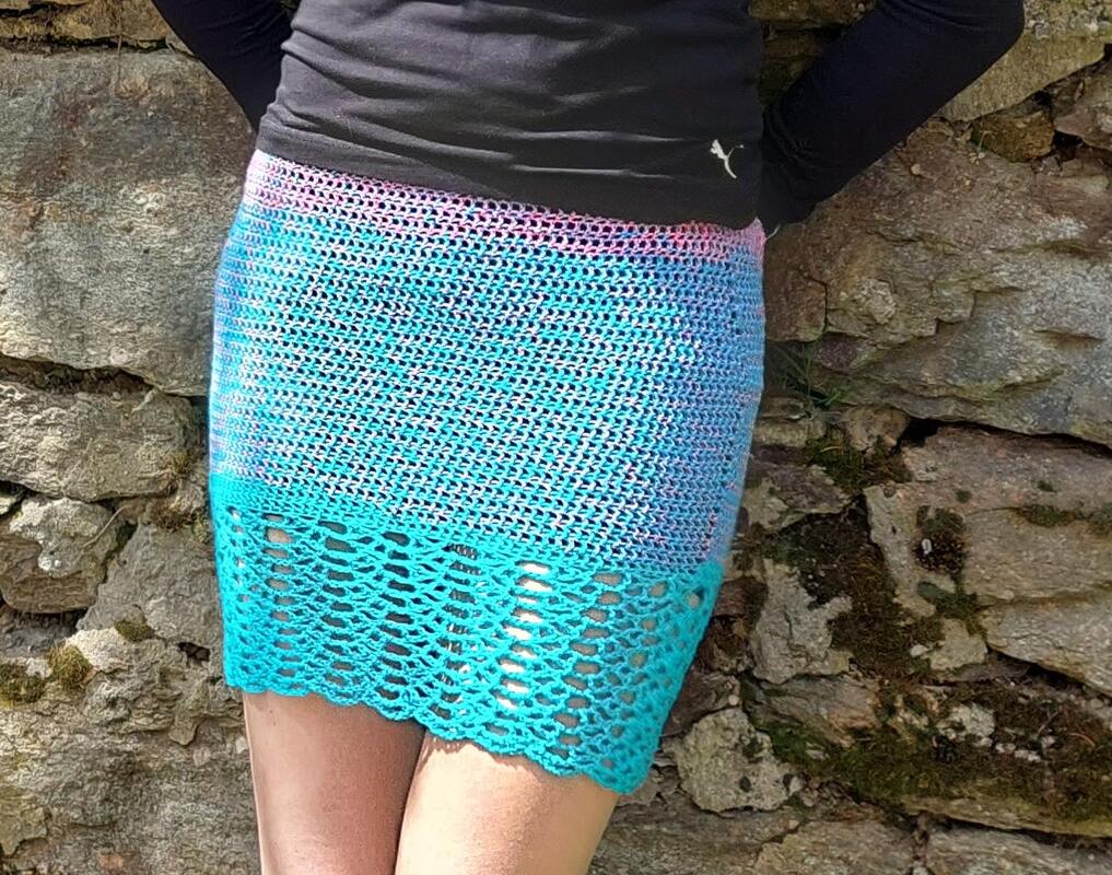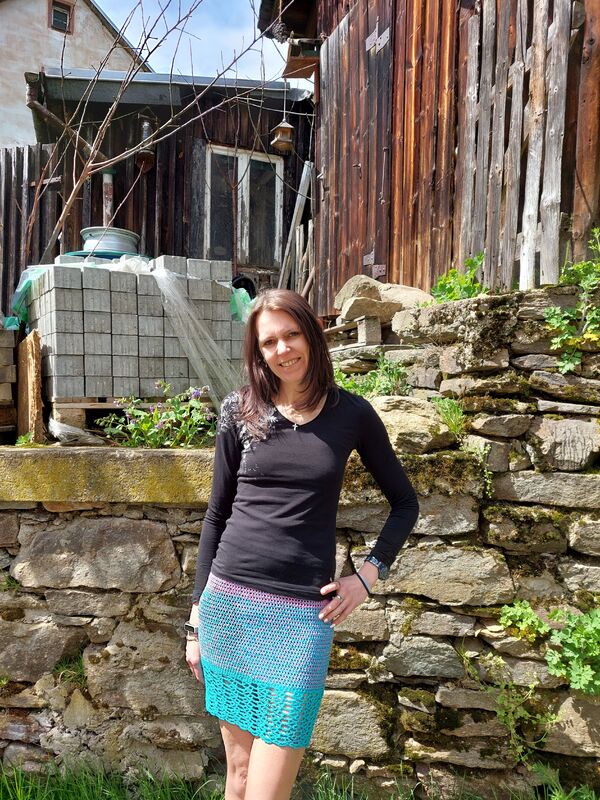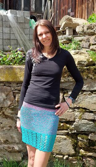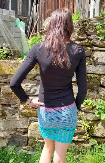 Ihr könnt selbstverständlich auch eine andere Wolle / Farbe / Nadel für den Rock verwenden.