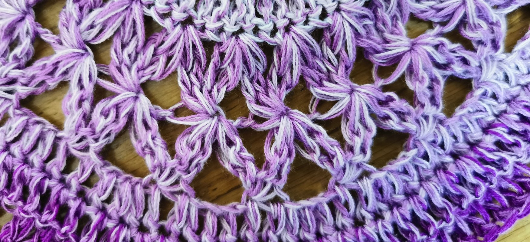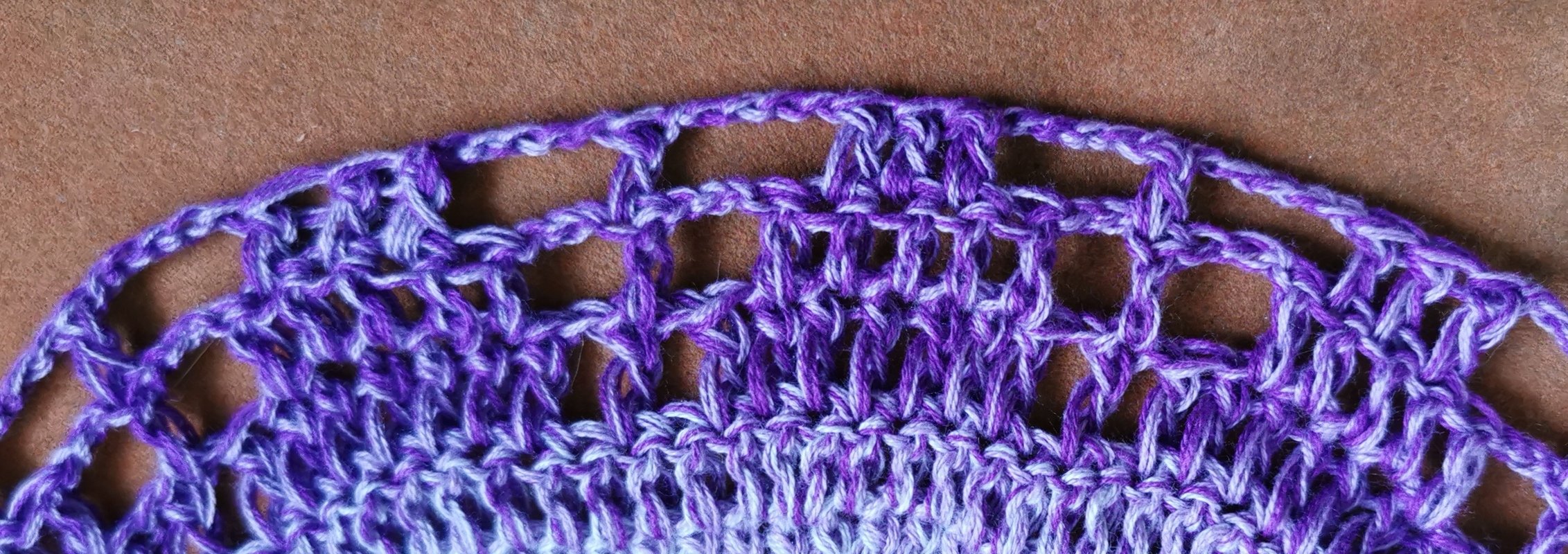 Der Kreis wird aus verschiedenen, leicht zu häkelnden Lochmustern gehäkelt, das Rechteck aus dichten Stäbchen, Gegensätze ziehen sich also tatsächlich an.
