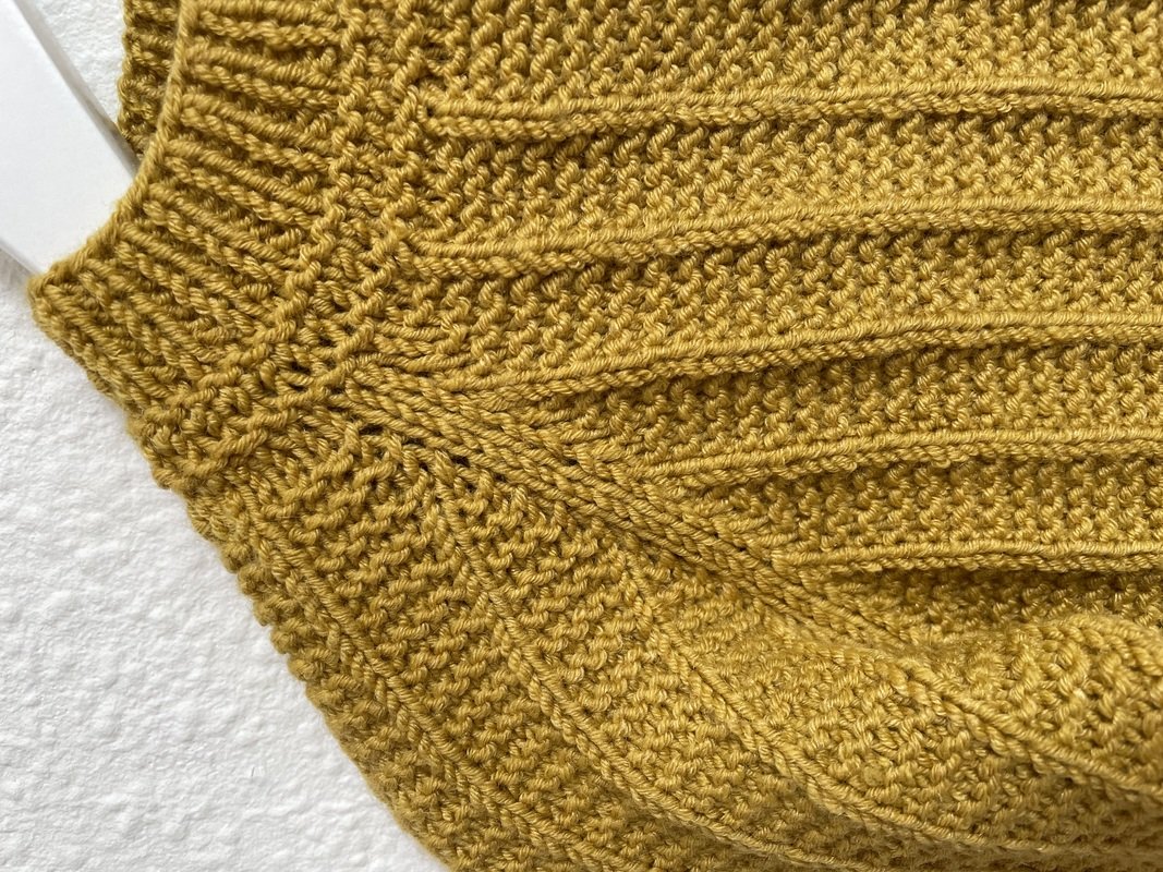 Man sollte schon gut stricken können, da mit verkürzten Reihen und nach Strickschrift gearbeitet wird.