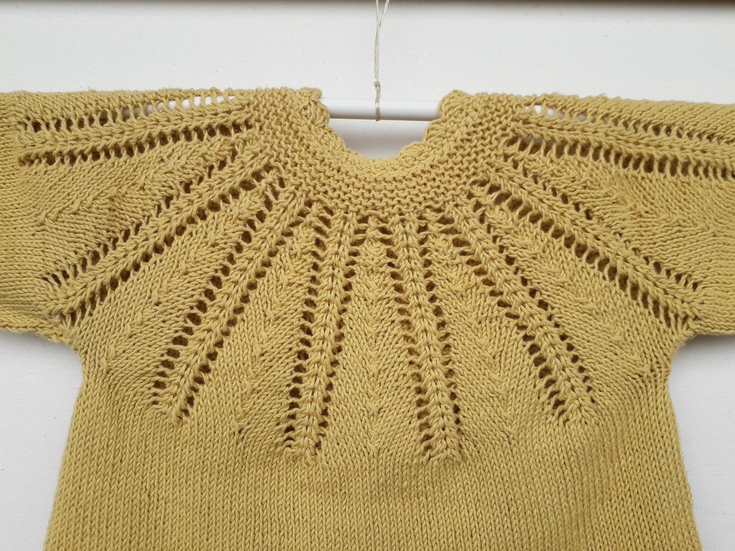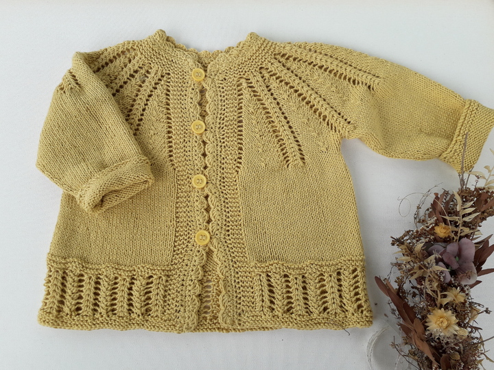 Strickanleitung in deutsch für süße Babyjacke aus reiner Baumwolle für kleine Prinzessinnen, in Größe 80/86, ca. 12-18 Monate, mit wunderschönem aber einfachen Lochmuster und Rundpasse, PDF-Vorlage in deutscher Sprache in zwei Variationen (als ärmelloses Westchen oder als langärmelige Jacke)