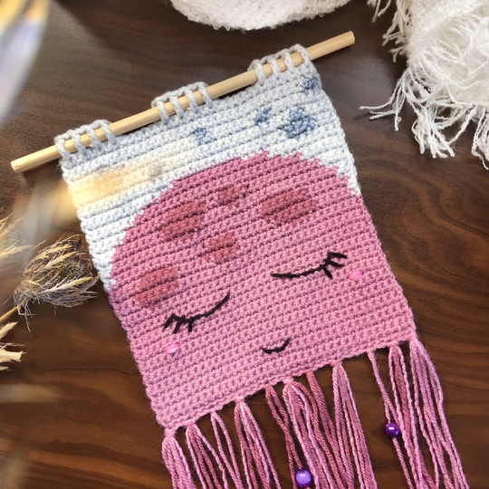 Dieser schöne Wandbehang kann individuell mit deinen Lieblingsfarben gehäkelt werden, sodass er sich auch gut in ein bestehendes Farbkonzept einfügt.