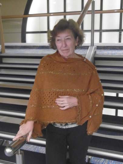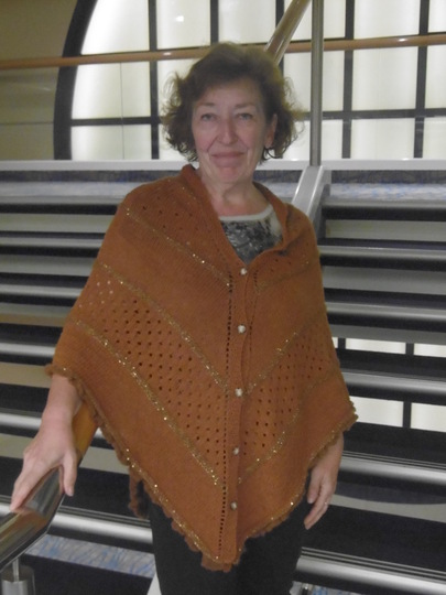 Der Poncho ist eine Einheitsgröße für Gr. S - XL und als Tuch kann man ihn gut um die Schultern legen.
