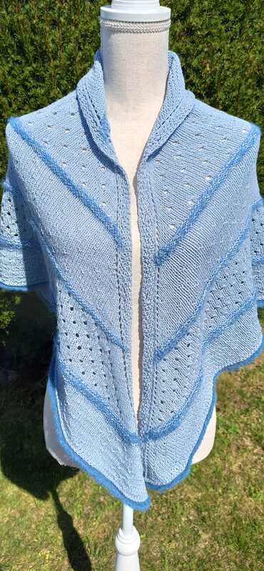 Wenn man ein dünneres Garn benutzt, muss man eventuell ein Muster zusätzlich anstricken, um die richtige Größe für den Poncho zu bekommen.