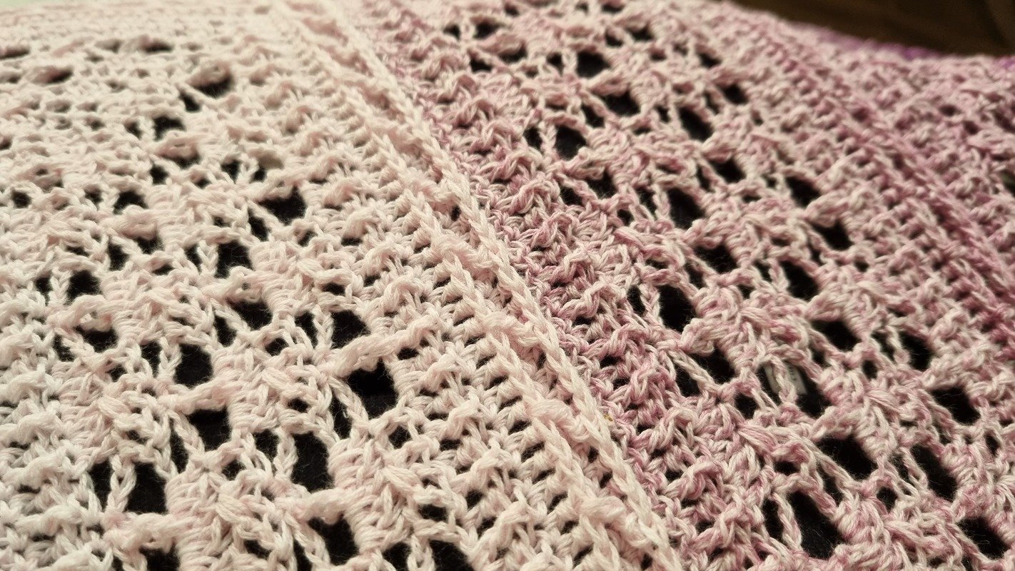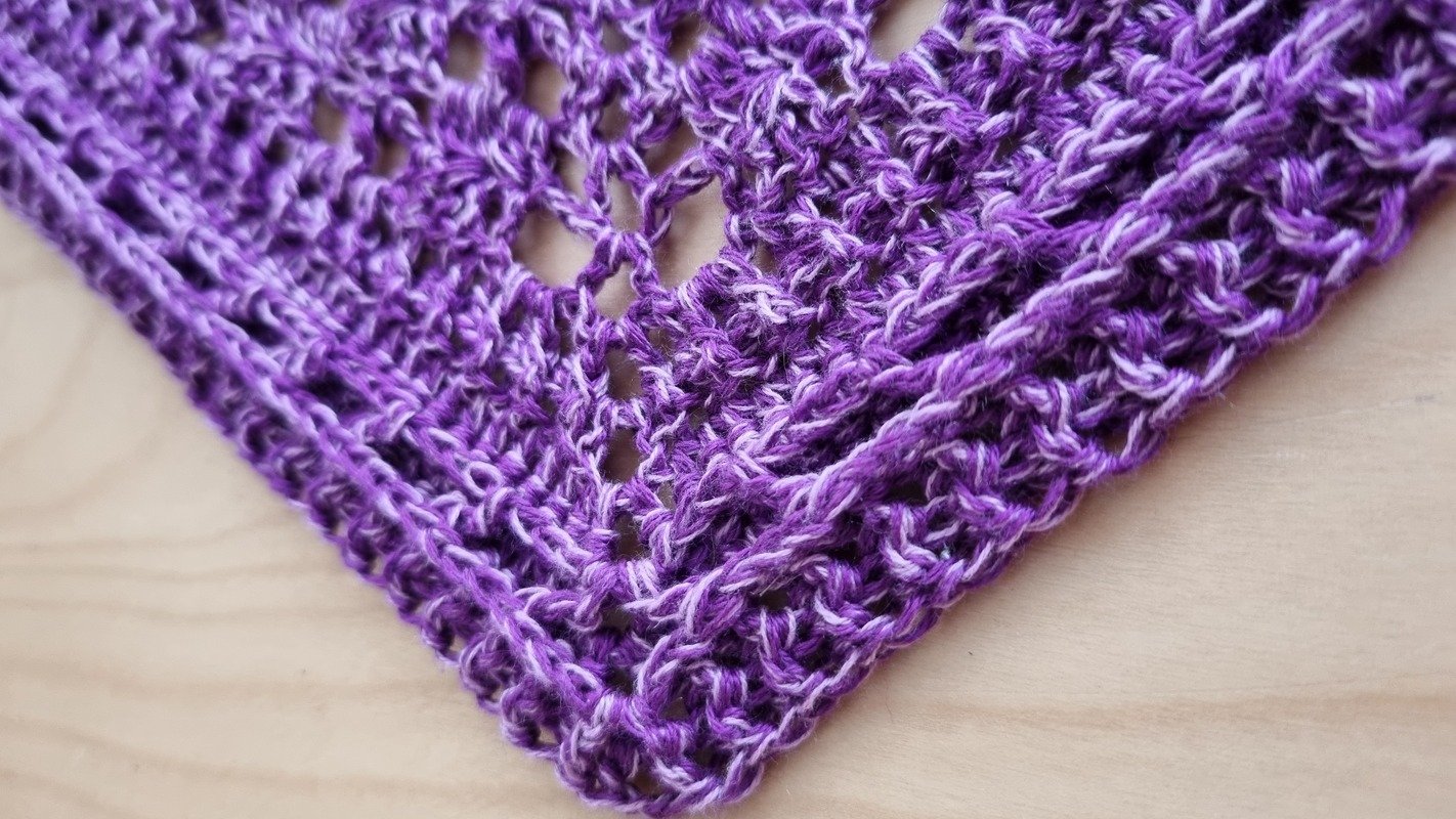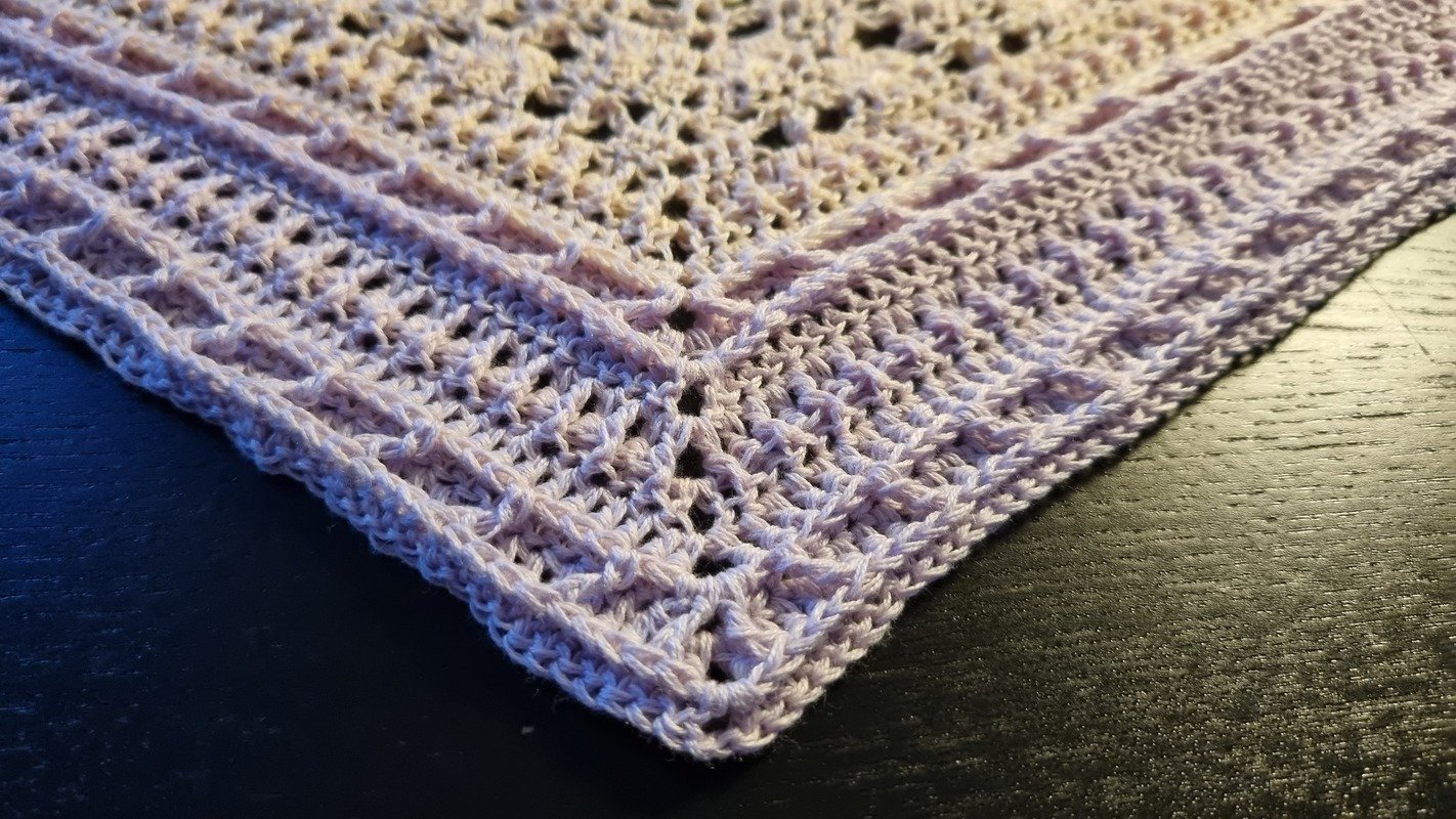 Das Muster kommt mit Reliefmaschen, Sprossen in die Reliefkante, verdrehte Schlaufen und gekreuzte Doppelstäbchen daher, wodurch ein abwechslungsreiches Muster und eine sanfte Struktur entstehen.