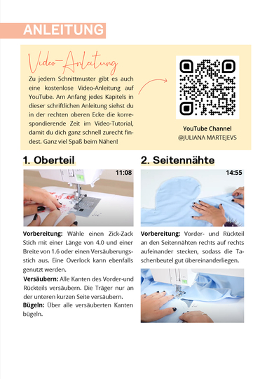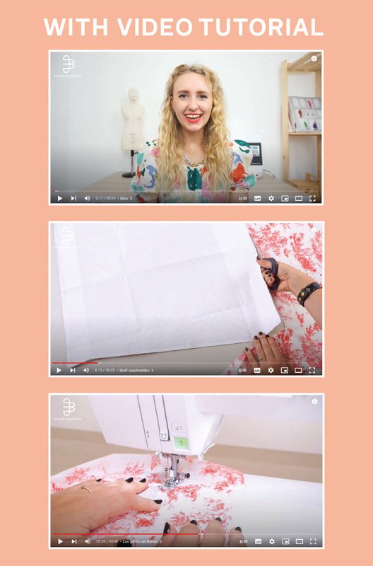 Die Video-Anleitung zum Schnittmuster findest du auf unserer Website unter Tutorials. Falls du noch nie genäht hast, schau dir als erstes unser Nähmaschinen-Grundlagen Video-Tutorial an. Dort lernst du die Bestandteile einer Nähmaschine kennen und lernst deine erste Naht zu fertigen.