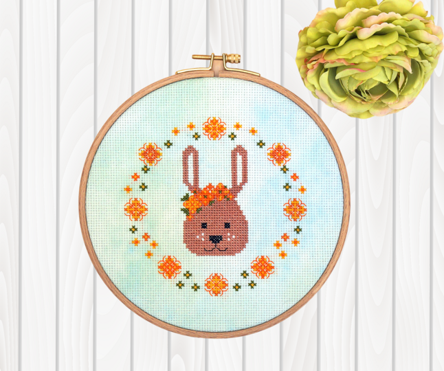 Für den Hasen benötigst du ein paar Grundkenntnisse im Kreuzstich und Konturstich.