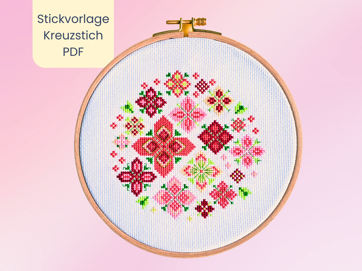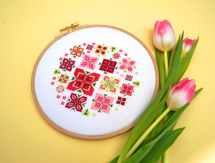 Du benötigst Grundkenntnisse im Kreuzstich und Konturstich.