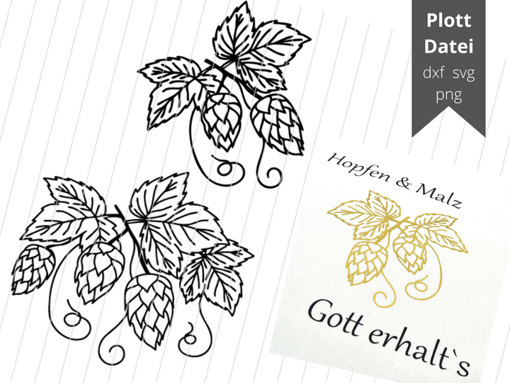 Die Hopfenpflanze ist in zwei Varianten enthalten und kann mit eigenen Schriften kombiniert werden.