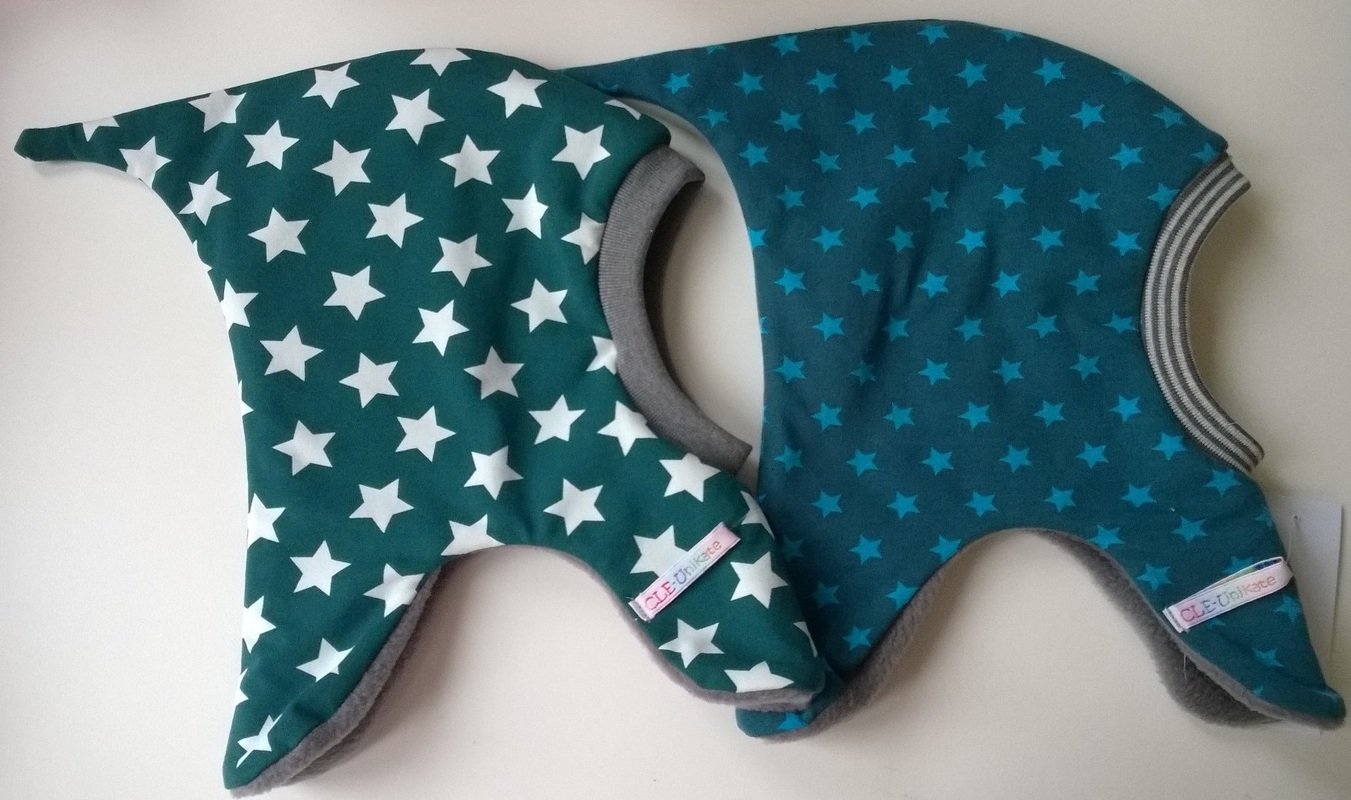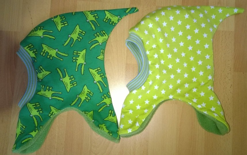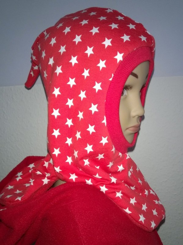 Das Ziel dieser Anleitung ist eine Schlupfmütze mit Zipfel, also eine Mütze und Schal in einem. Sie hält Kopf und Hals schön warm. Die Ausenseite besteht aus gemustertem Jersey. Die Innenseite kann mit Jersey oder als Wintervariante mit kuschligem Fleece-Stoff gefüttert werden.