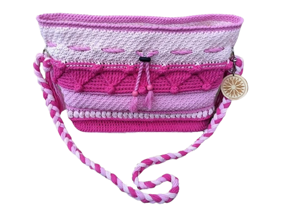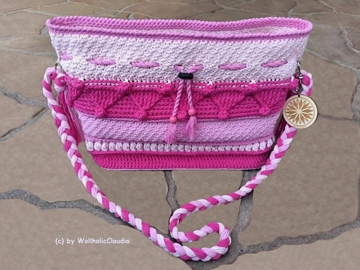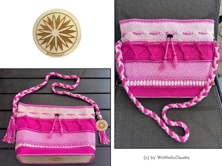 Beispiel hier in rosa/ Pink - Gr. 2 mit einem fertigen Taschenboden und 2 gehäkelten Henkeln: