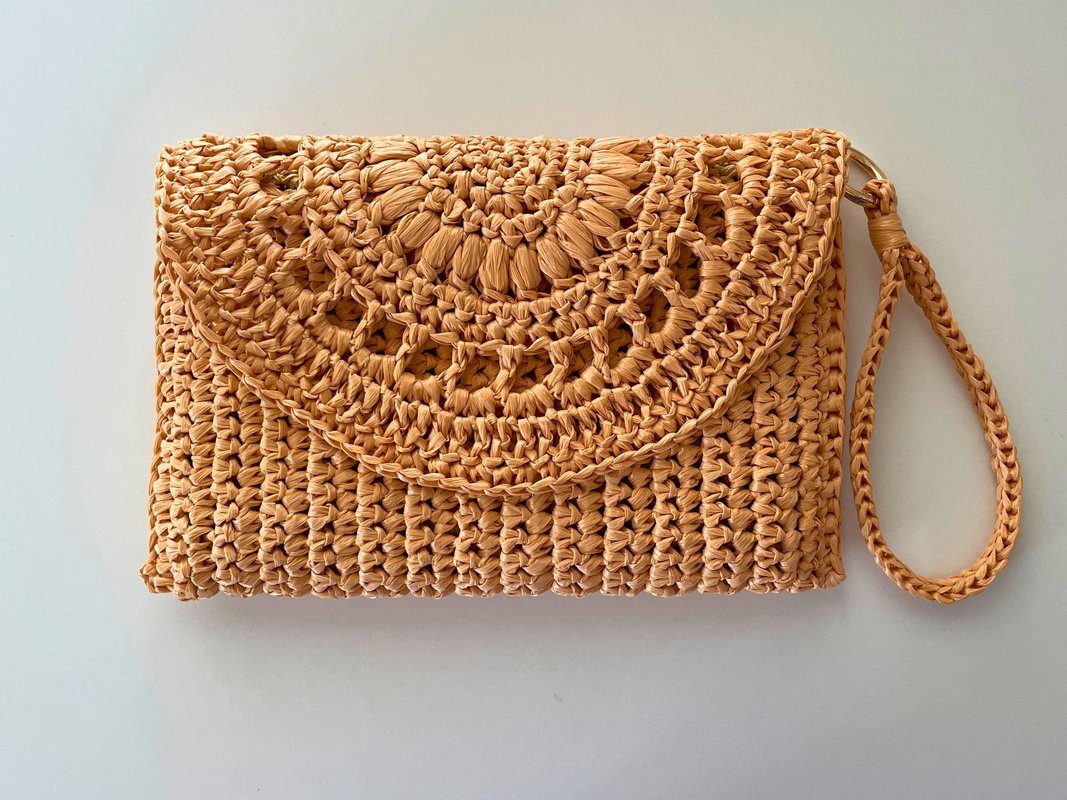 Häkelt Euch eine elegante und praktische Clutch aus Bast für den Sommer mit dieser Häkelanleitung zum Nacharbeiten eines Clutchtäschchens! Mit Hilfe dieser Anleitung läßt sich ein Clutchtäschchen nachhäkeln, das für den Sommer wie geschaffen ist, ob beim Spaziergang oder am Strand. Dieses hübsche und praktische Accessoire bietet Platz für das Notwendigste, das man immer dabeihaben sollte.