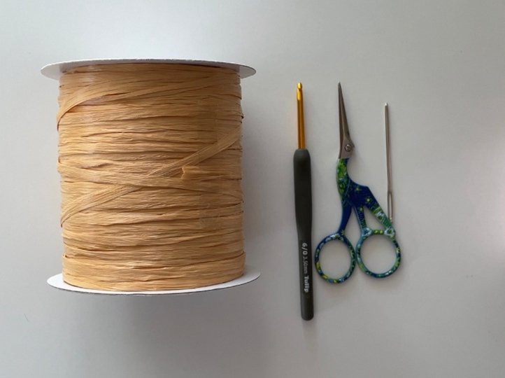 MATERIALIEN UND WERKZEUGE: Originalgarn: Raffia Sisters Natura (100% Pflanzenfasern, 250 m /