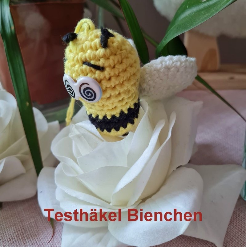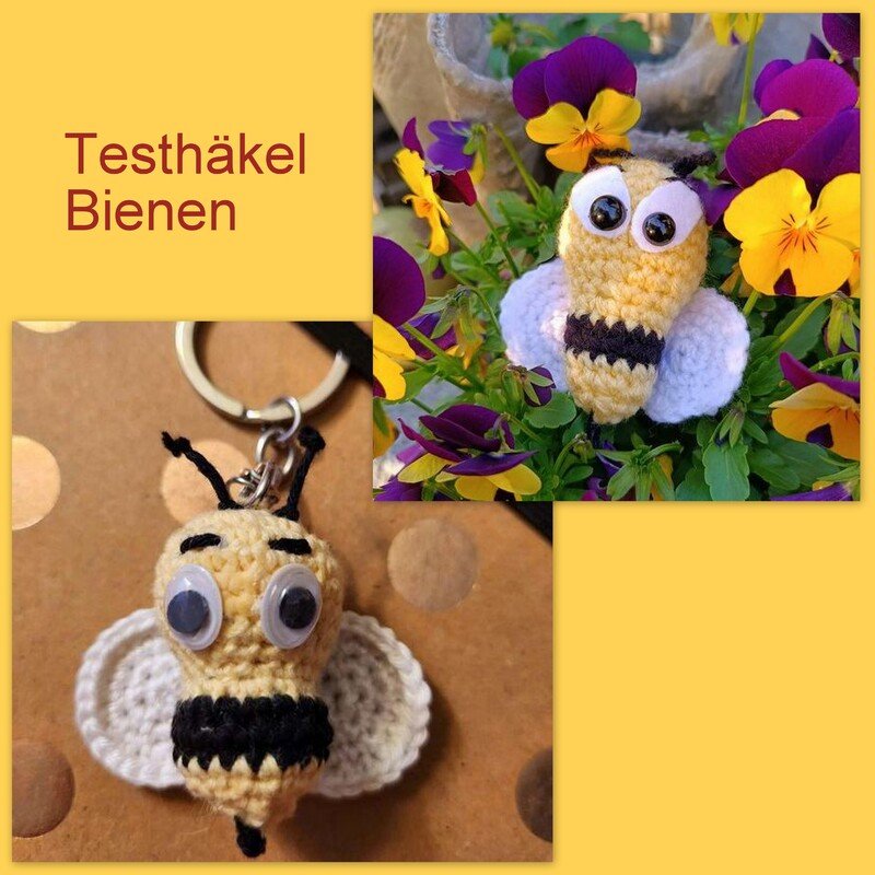 Mit dieser Anleitung kannst Du Dir Deine eigene kleine Biene, als Schlüsselanhänger, Taschenbaumler oder zur Deko, häkeln.