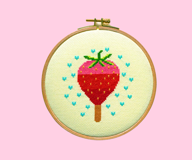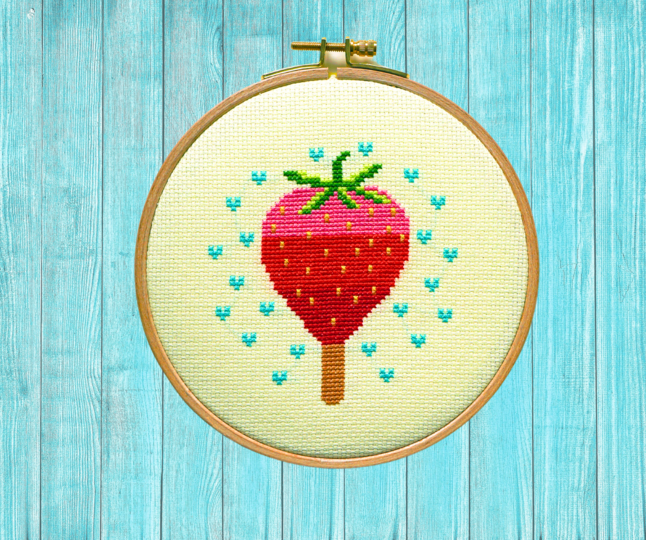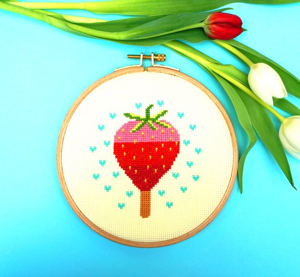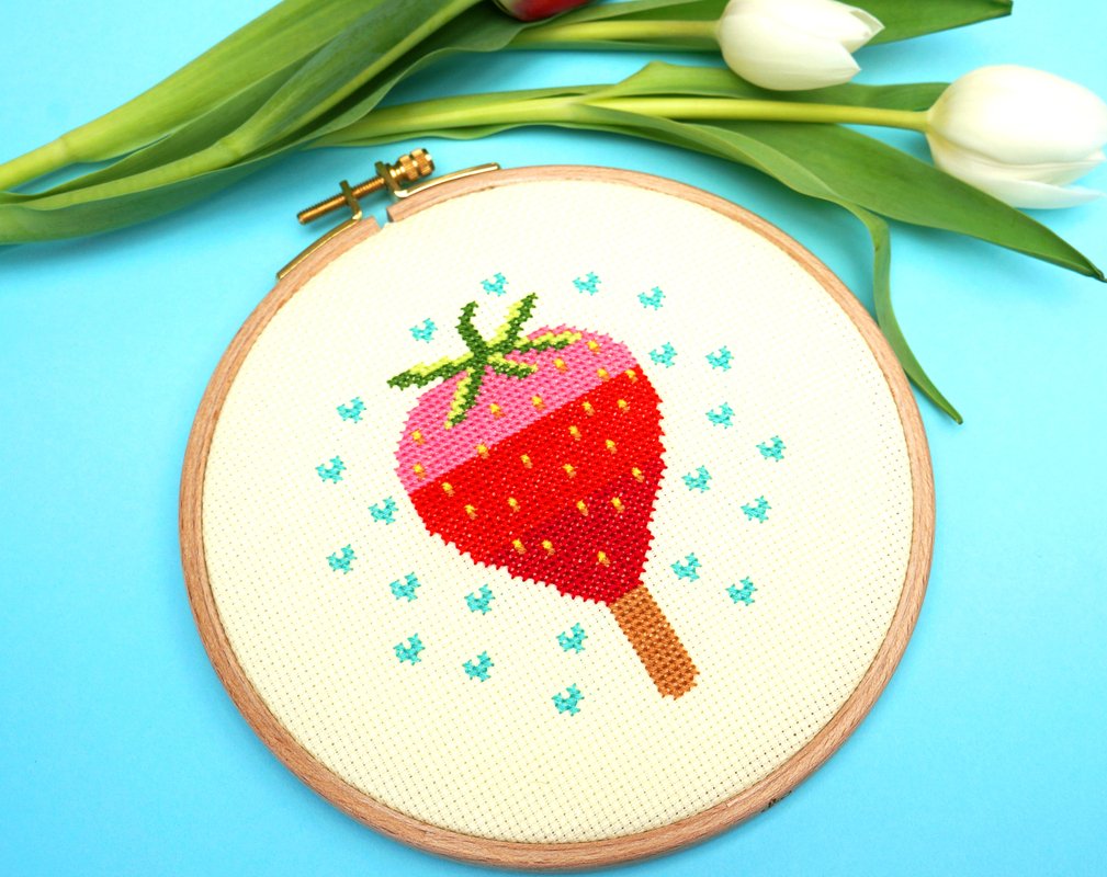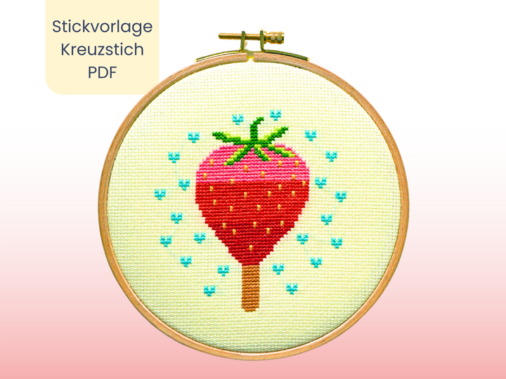Ich habe das Erdbeereis auf hellgelben Aida von Zweigart