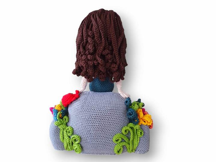 Sie eignet sich perfekt als Dekoration und ist in allen Räumen und Bereichen ein echter Hingucker. Auch auf dem Schreibtisch im Büro kann sie alle Blicke auf sich ziehen. Aqualayla kann sowohl auf ihrem Felsen sitzen bleiben als auch wo anders hingesetzt werden. Beide Teile werden separat voneinander gehäkelt. Auch die Krabben, das Seegras und die Seeanemonen werden separat gehäkelt und können somit nach Belieben angeordnet werden.