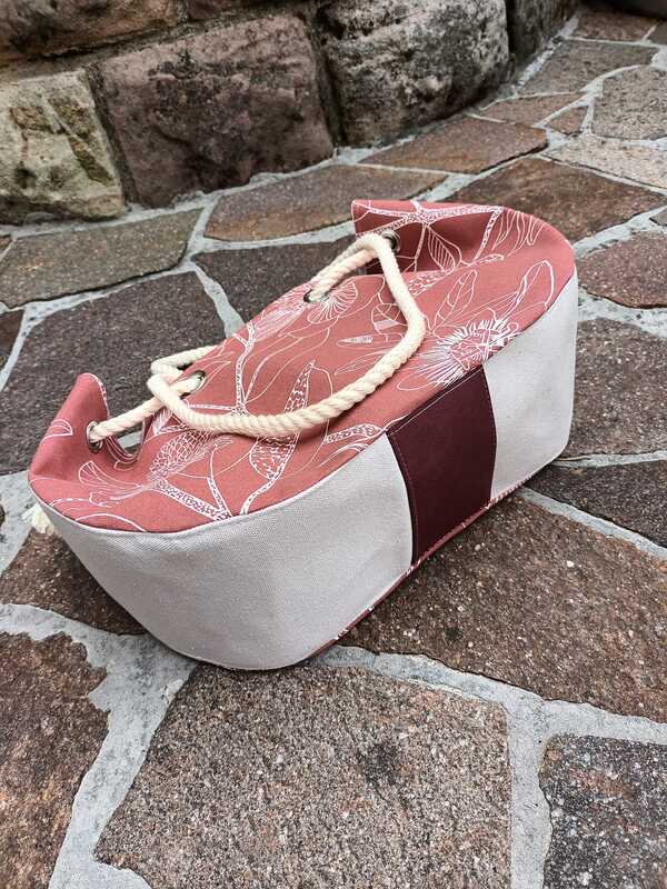 Die Beuteltasche Liana ist eine schnell genähte und moderne Sommertasche mit einer Grösse von H/B/T: 20 cm / 33 cm / 14 cm. Durch das clevere Kordelsystem lässt sie sich mit nur einem Zug verschliessen und öffnen. Auch Taschenanfänger können mit den detaillierten Erklärungen ohne Probleme die Ösen montieren.