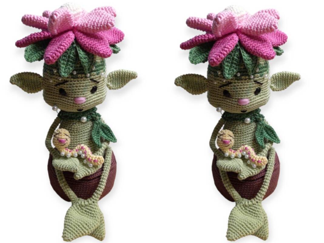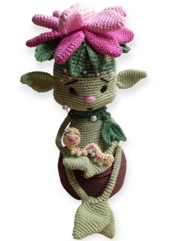 Flora wurde von mir mit Woll Butt Camilla und einer Nadelstärke von 2,0 gehäkelt. Sie hat bei mir mit Blumentopf eine Höhe von ca. 32cm.