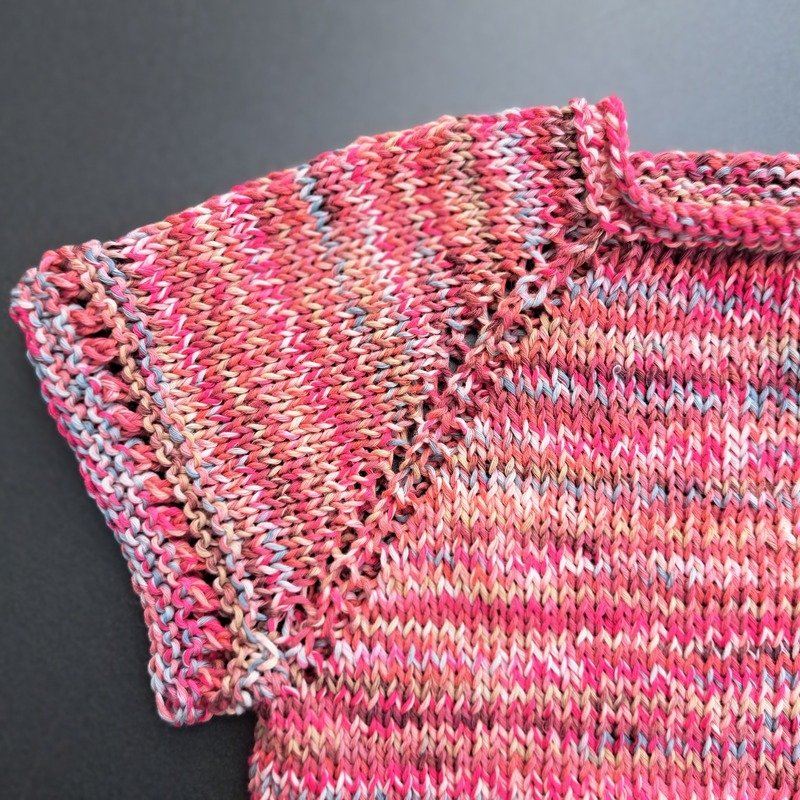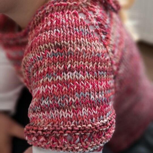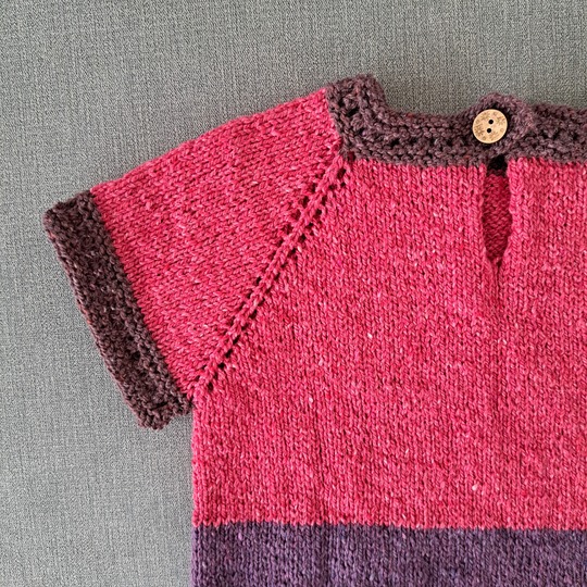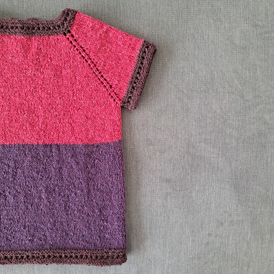 Das T-Shirt wird als Raglan von oben am Stück gestrickt - ohne Zusammennähen von Einzelteilen. Am Rückenausschnitt wird ein kleiner Tropfenausschnitt gearbeitet, der mit einem Knopf geschlossen werden kann. Die Anleitung ist anfängertauglich und beinhaltet einige Tipps und Tricks.
