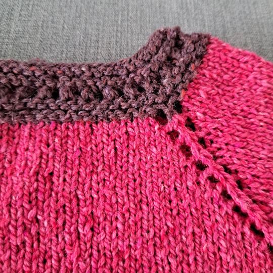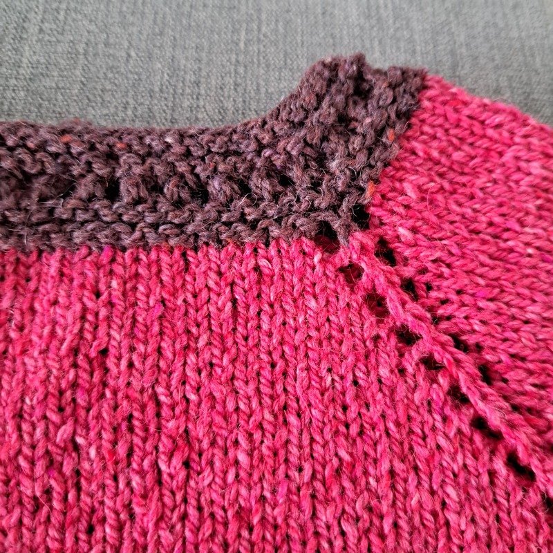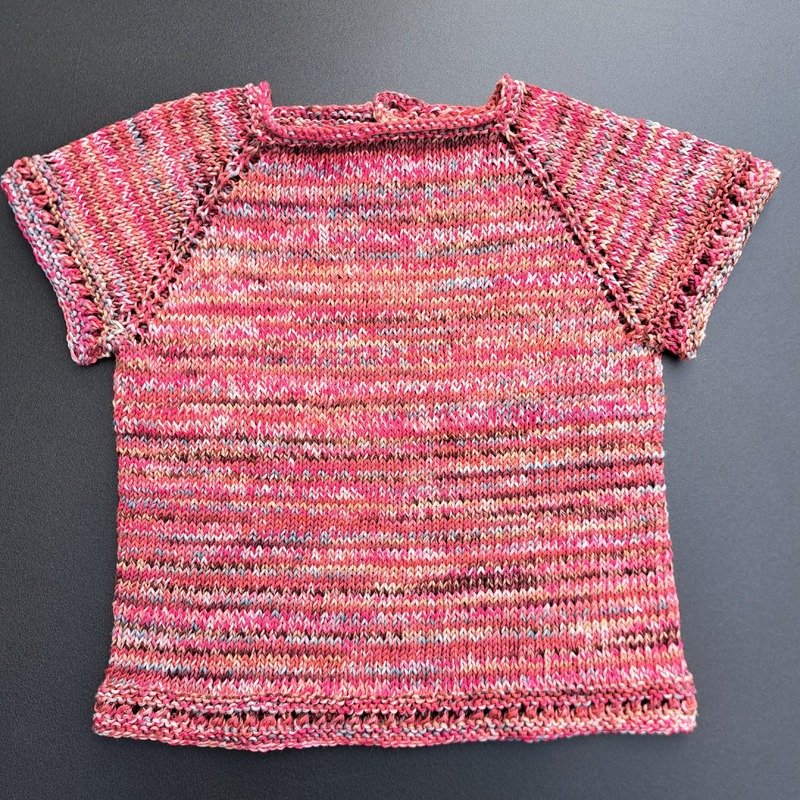 Stylische Lochmusterdetails zieren dieses einfach zu strickende T-Shirt für Kinder: Lochmusterbündchen und eine Lochmusterraglanlinie.