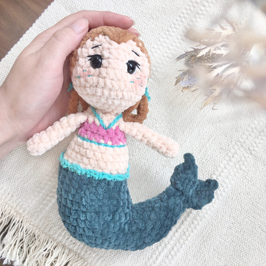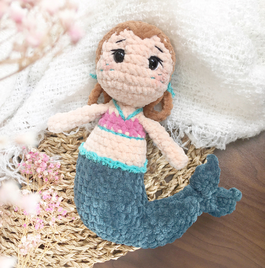 Mit dieser Häkelanleitung kannst du die Nixe Neolie häkeln. Sie wird an einem Stück gehäkelt, von unten nach oben.