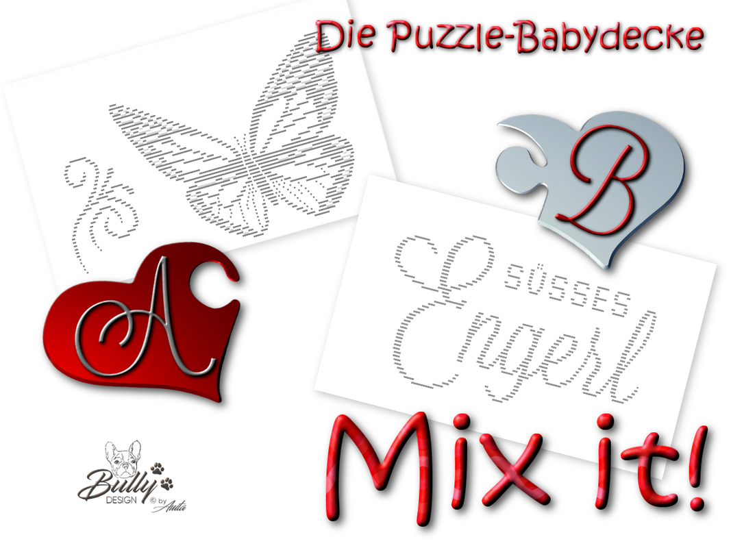 Kombiniere ein Motiv-Teil A mit einem Schriftzug-Teil B aus unserer Mix it!-Serie und bastle dir so deine ganz persönliche Babydecke!