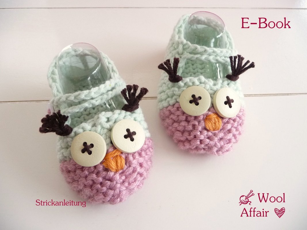 Strickanleitung für süße Babyballerinas im Eulen - Outfit für kleine Zwerge