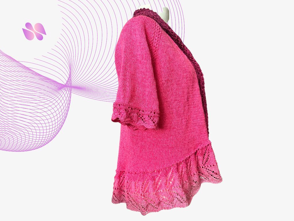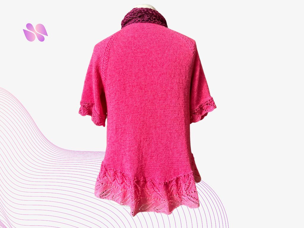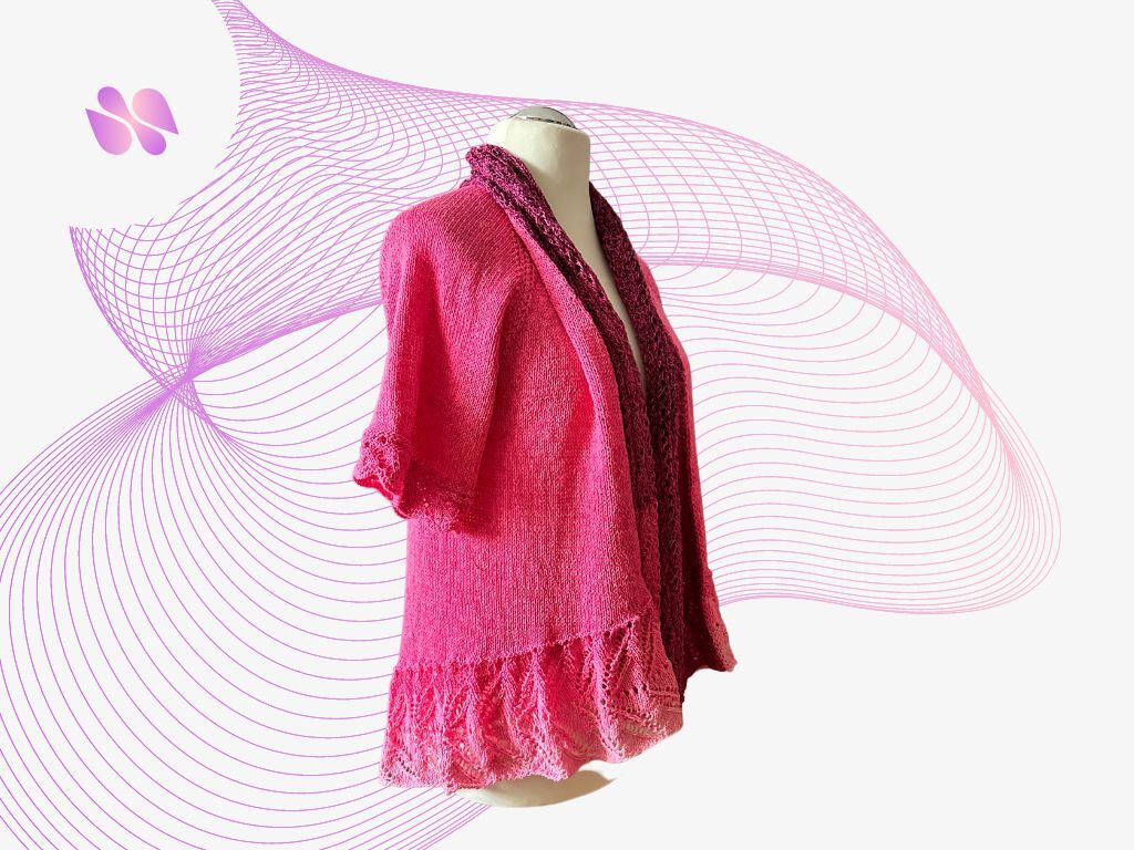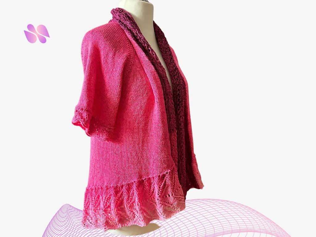 In der Anleitung werden verkürzte Reihen verwendet, um die Rückseite der Jacke länger zu machen als die Vorderseite. Dadurch entsteht eine schöne Silhouette und eine bequeme Passform.