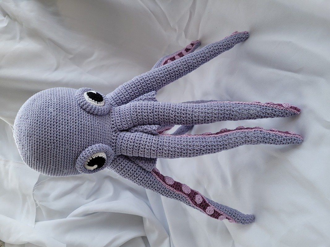 Carlos hat zwar ganz klassisch acht Arme, trotzdem musst Du ihn häkeln, er kann es nicht selber.