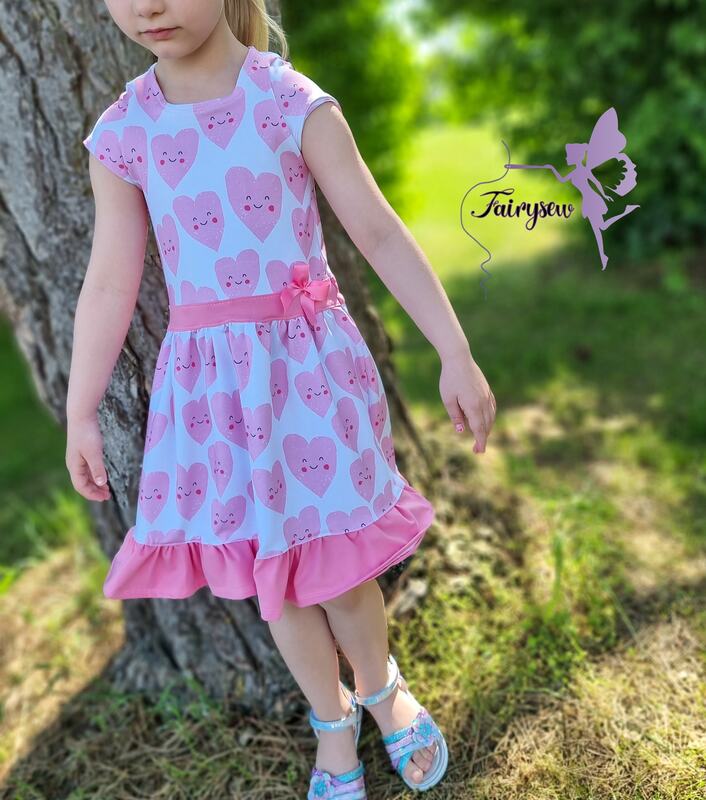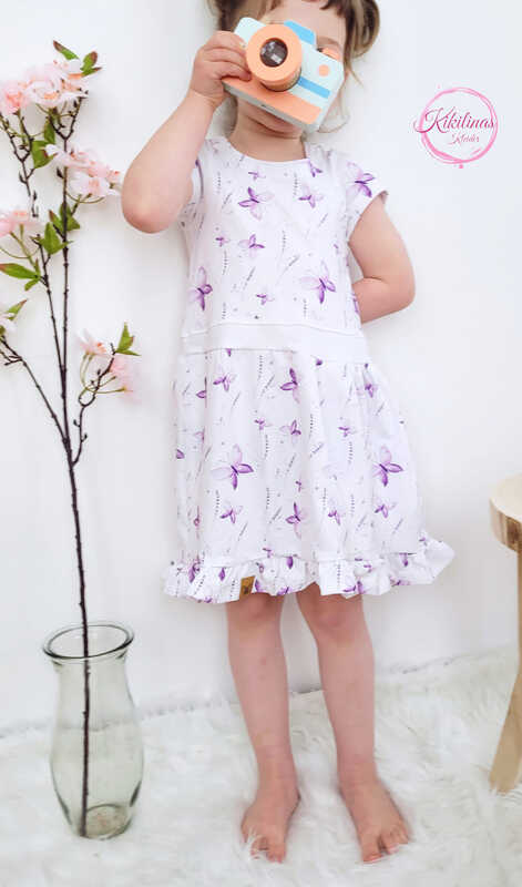 Ab sofort kannst du dafür ein zuckersüßes Kleid nähen! Nova hat 2 verschiedene Ärmel-Varianten („normal“ und „gerafft mit Paperbag) und ist idealerweise aus Jersey nähbar. Das Kleid kannst du von Gr. 104 – 164 in Einzelgrößen nähen – und das ganz ohne Bündchen.