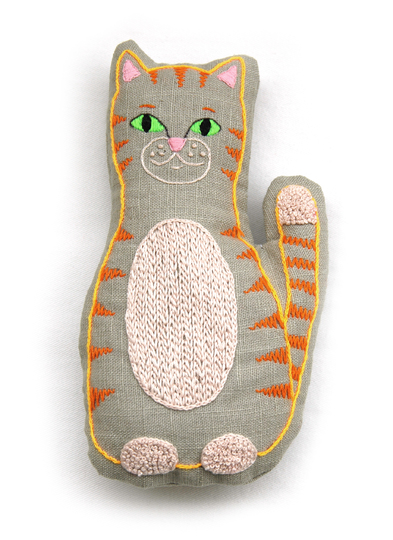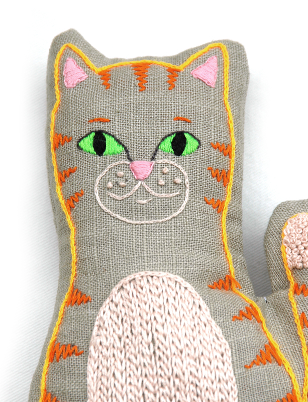 PDF Stickmotiv Vorlage und Nähanleitung für handgemachte moderne Stickerei Kuscheltier Katze. Ausführliches 8 seitiges PDF mit Anleitung für ANFÄNGER. Das Motiv kann als Vorlage ausgedruckt werden.