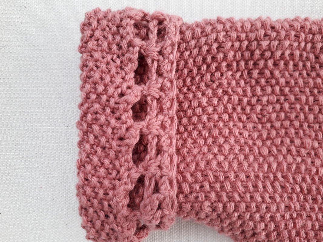 Was du können solltest: Rechte und linke Maschen stricken, sowie verschränkte Maschen, Maschen überzogen zusammenstricken, Umschläge, Knopflöcher , aber eigentlich ist alles in der Anleitung bestens beschrieben. Für die Häkelkante solltest du Luftmaschen, feste Maschen und Stäbchen häkeln können.