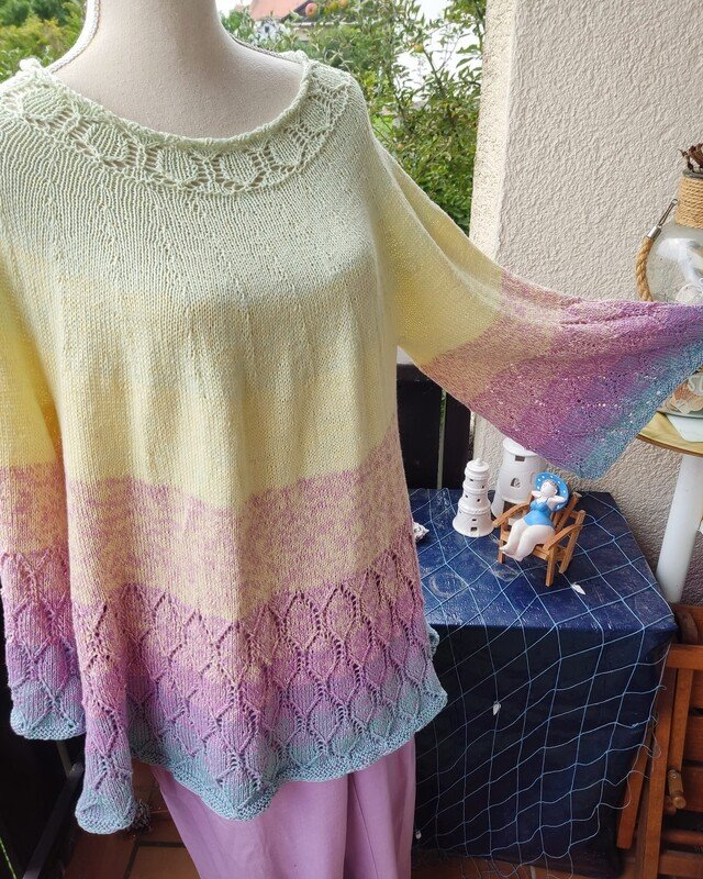 Die Anleitung ist Rundenweise für die Größen S-XXXL geschrieben.