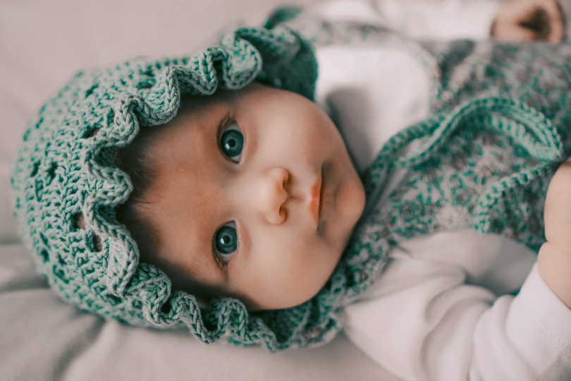 Die Mütze könnt ihr in 5 verschiedenen Größen häkeln (ca. 0-3 Jahre).