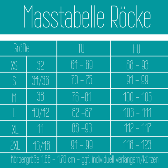 Varianten: Vokuhila – Vokuhilarock – Midi&Maxilänge – integrierte Pants (auch einzeln nähbar) – Geheimtasche