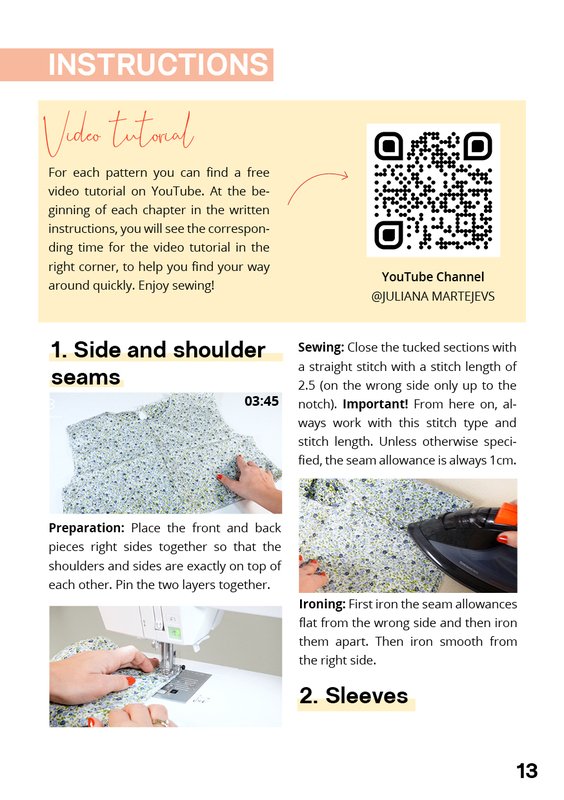 • Schnittmuster in den Größen XS-XXXL als PDF in A4 und US Letter zum Download
