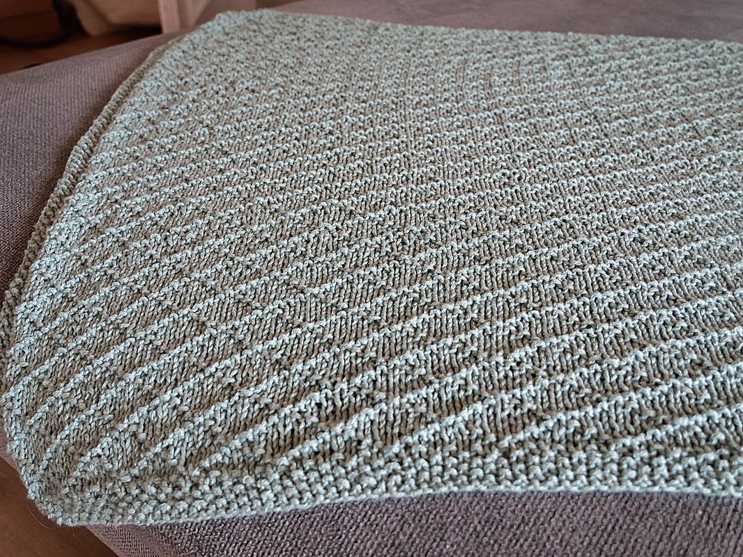 Die benutzte Wolle ist schön leicht und durch den Baumwollanteil auch als leichte Sommerdecke geeignet.