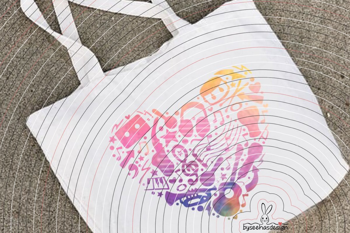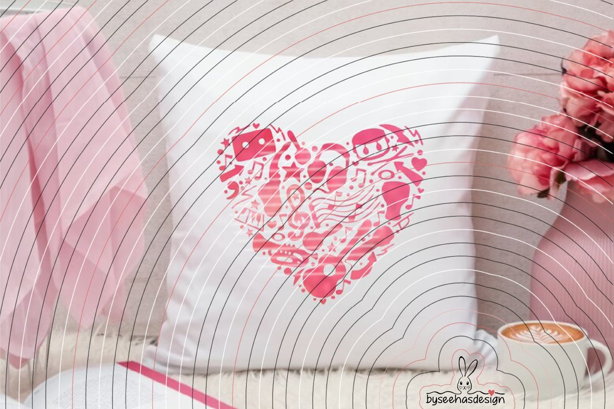 Musiknoten, Herzen und Sternen, in Form eines Herzens.