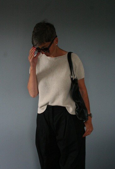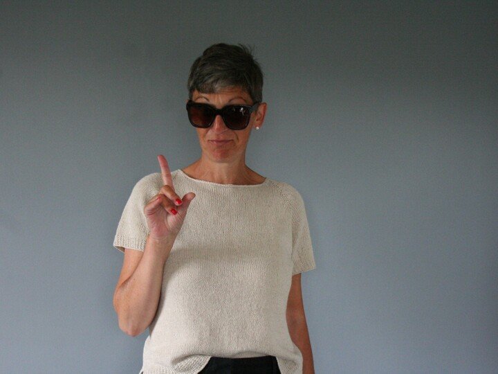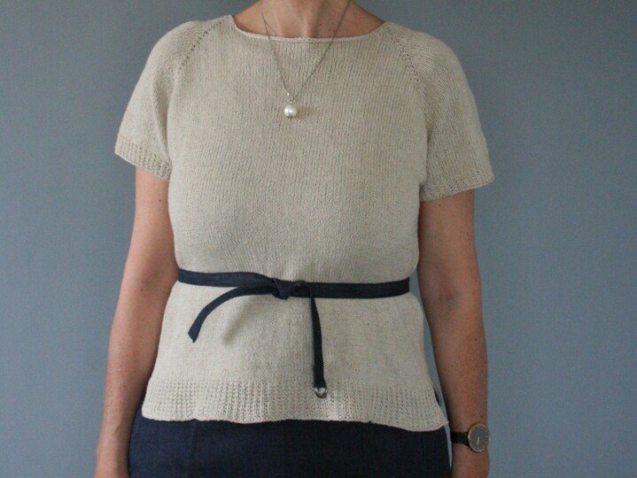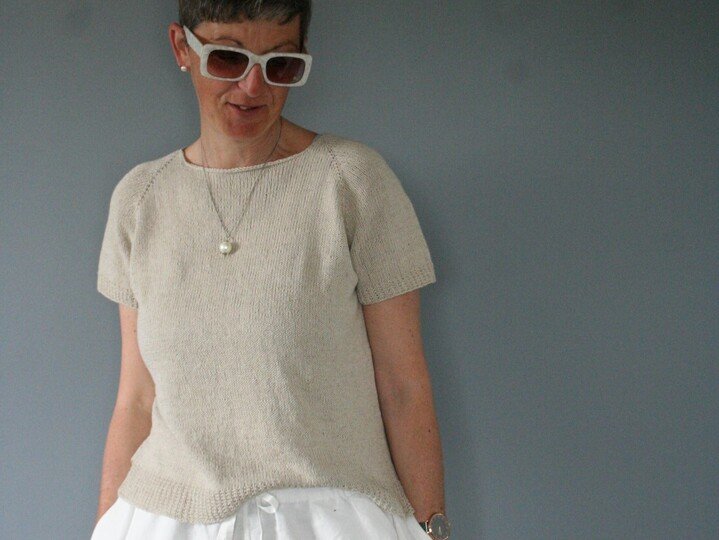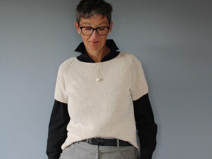 "Jasmin Tee" ist ein top down gestrickter Raglansweater mit kurzen oder langen Ärmeln.