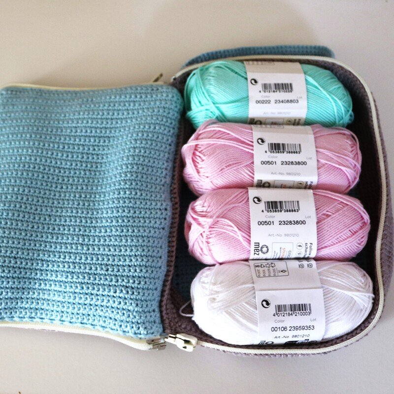 Du möchtest auch unterwegs deinem Hobby nachgehen, oder einfach deine Häkelsachen vernünftig verstauen? Dann ist diese wunderschöne Handarbeitstasche genau das richtige. Sie bietebietetbietet 3 Fächer für Häkelnadeln und 2 für sonstige Utensilien. Es gibt auch noch ein Staufach, für begonnene Projekte oder Wolle. Durch die 2 Reißverschlüsse ist der Inhalt gut vor Staub geschützt.