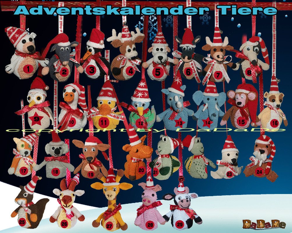 Oder du häkelst z.B. nur 12 Tiere und den Rest hängst du als kleine Päckchen dazwischen!