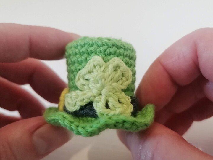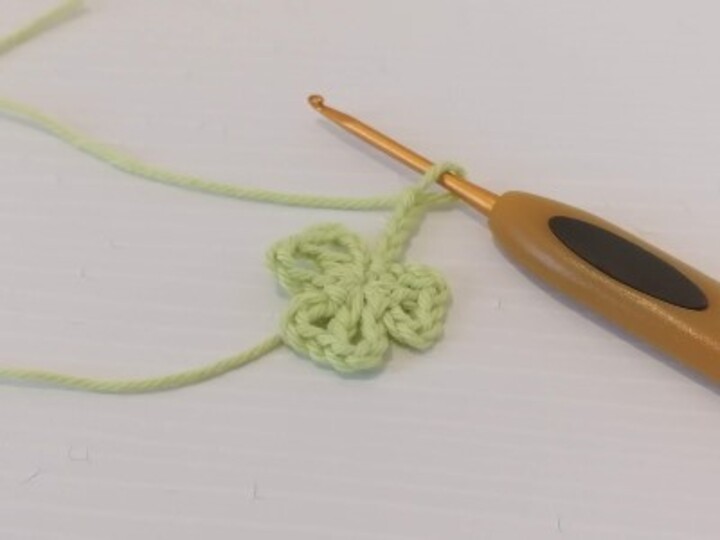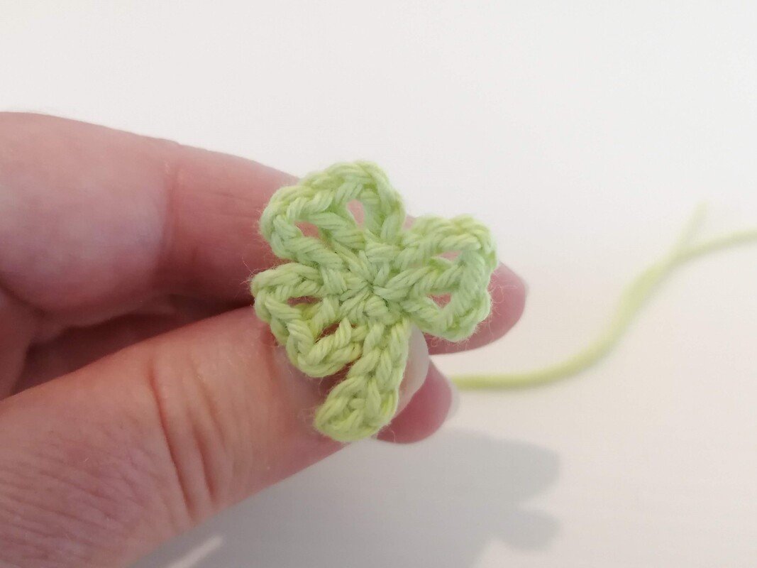 Das Kleeblatt wird mit dem angegebenen Garn und der Häkelnadel etwa 3 cm hoch.