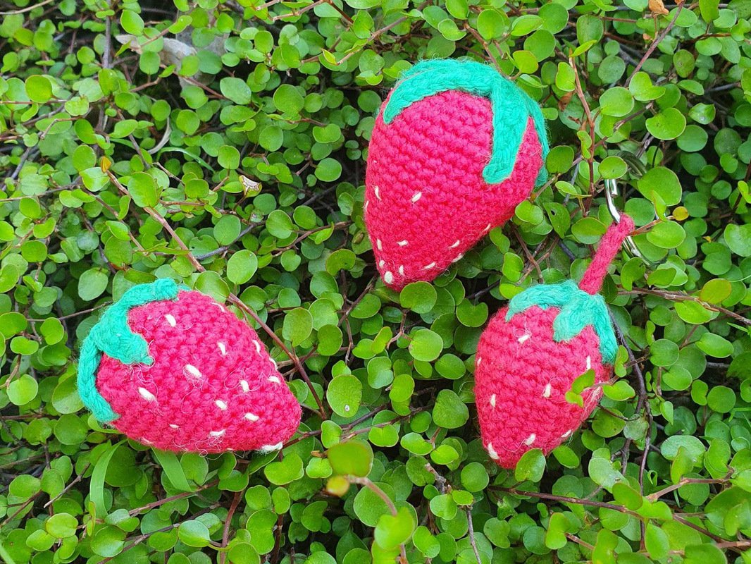 Die Erdbeeren sind optimal für Kaufladen oder Kinderküche. Optional können sie auch als Anhänger gehäkelt werden.