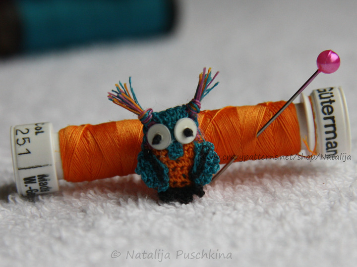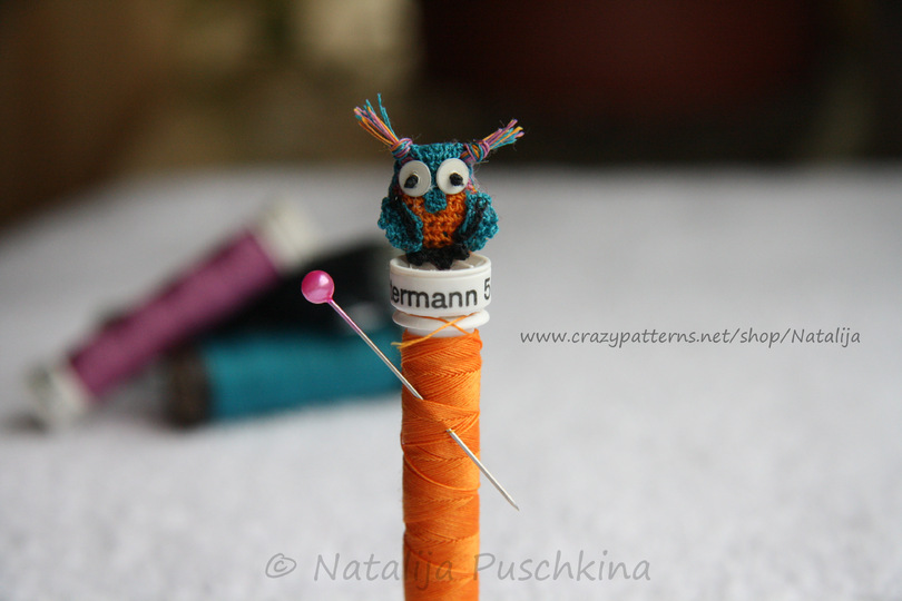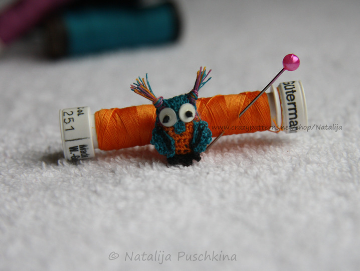Die Eulej auf dem Foto hat ihr Haus auf meinem Nadelkissen gefunden. Sie fühlt sich gut und schaut toll aus. Ich glauge diese Micro Eule kann auf jedem Tisch / in jedem Büro einen gemütlichen Plätzchen finden (Lampe, Regal....) oder auch auf einer Pflanze. Fertige Eule ist ca. 1 cm gross.