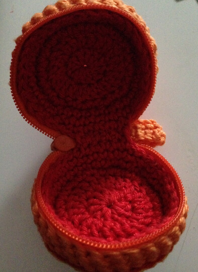 Durch eine Lasche, an der man einen Ring oder Haken anbringen kann, lässt sich die runde Tasche auch als Schlüsselanhänger benutzen.