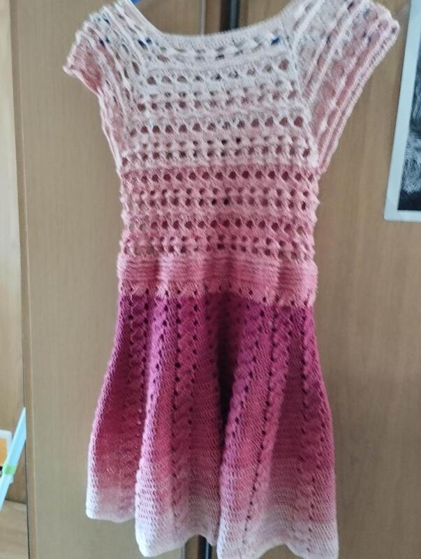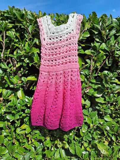 Das Kleid Yarice ist, aufgrund seiner Arbeitsweise, bestens für Farbverlaufsgarn geeignet.